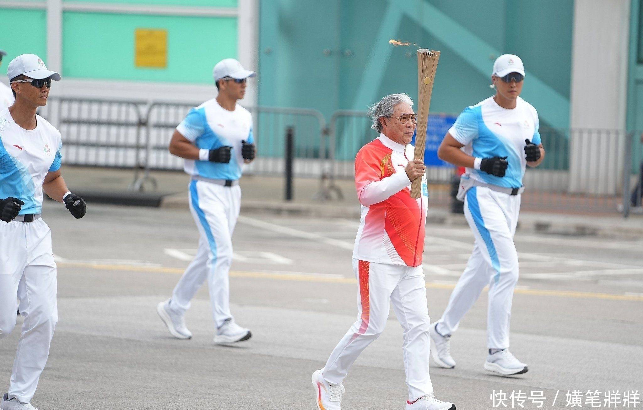尽管年近八旬,但他身姿挺拔、步伐稳健,顺利完成火炬传递任务,赢得现场阵阵掌声。